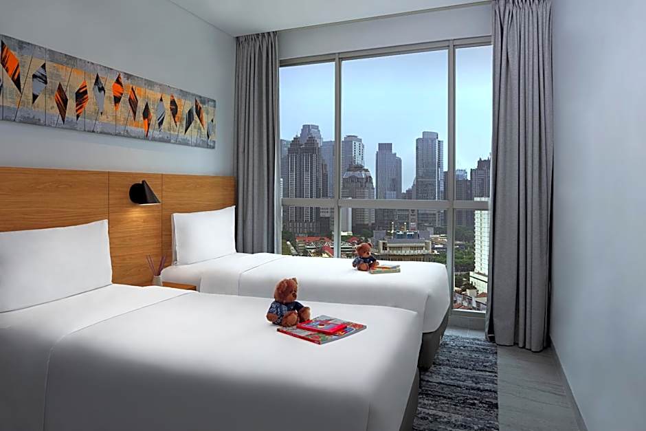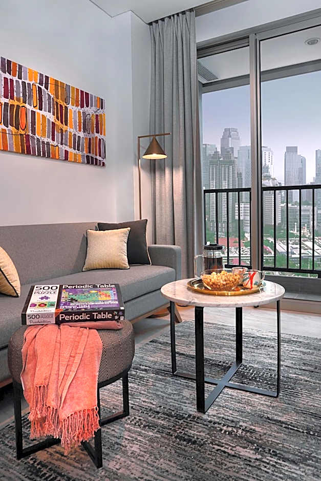 This spacious apartment consists of 1 living room, 1 separate bedroom and 2 bathrooms with a bath and free toiletries. The apartment's kitchen, which features a refrigerator and a microwave, is available for cooking and storing food. The air-conditioned apartment provides a flat-screen TV, a washing machine, a seating area, a sofa as well as city views. The unit offers 2 beds.